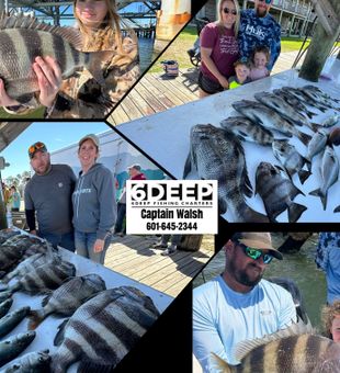 It was a beautiful March day down at the Fort Morgan Marina in Foley, Alabama, and we were geared up and ready to hit the water for a Gulf Shores Fishing Charter with 6Deep Fishing Charters. As an experienced guide, I always love this time of year - the weather is starting to warm up, and the inshore species like Sheepshead and Flathead catfish are really getting active. We had a group of four anglers joining us for a 2-4 hour private morning trip, and everyone was eager to try their luck. We got set up with a mix of deep sea, fly fishing, heavy tackle, light tackle, and drift fishing techniques, ready to target a variety of inshore species. The conditions were perfect - clear skies, calm waters, and great visibility. It didn't take long before the rods started bending, and the guys were reeling in some nice Sheepshead. They were putting up a great fight, darting between the rocks and structure, but the crew and I helped guide the anglers and get those fish in the boat. A little later, we managed to hook into a few Flathead catfish as well, adding some nice variety to the day's catch. Throughout the trip, the energy on the boat was fantastic. Everyone was engaged, asking questions, and working hard to master the different techniques. Between the steady bites and the great company, it was just an all-around fun and productive day out on the water. That's what I love most about these inshore charters - you never know quite what you're going to encounter, but you can always count on a memorable experience. If you're looking to enjoy some of the best inshore fishing the Gulf Shores area has to offer, I highly recommend booking a Gulf Shores Fishing Charter with 6Deep Fishing Charters. Whether you're an experienced angler or a complete beginner, our knowledgeable crew will make sure you have an amazing time. We offer the flexibility to tailor the trip to your preferences, from quick 2-hour jaunts to longer 4-hour adventures. So gather up your crew, pick your preferred departure time, and let's go chase some Sheepshead, Flat