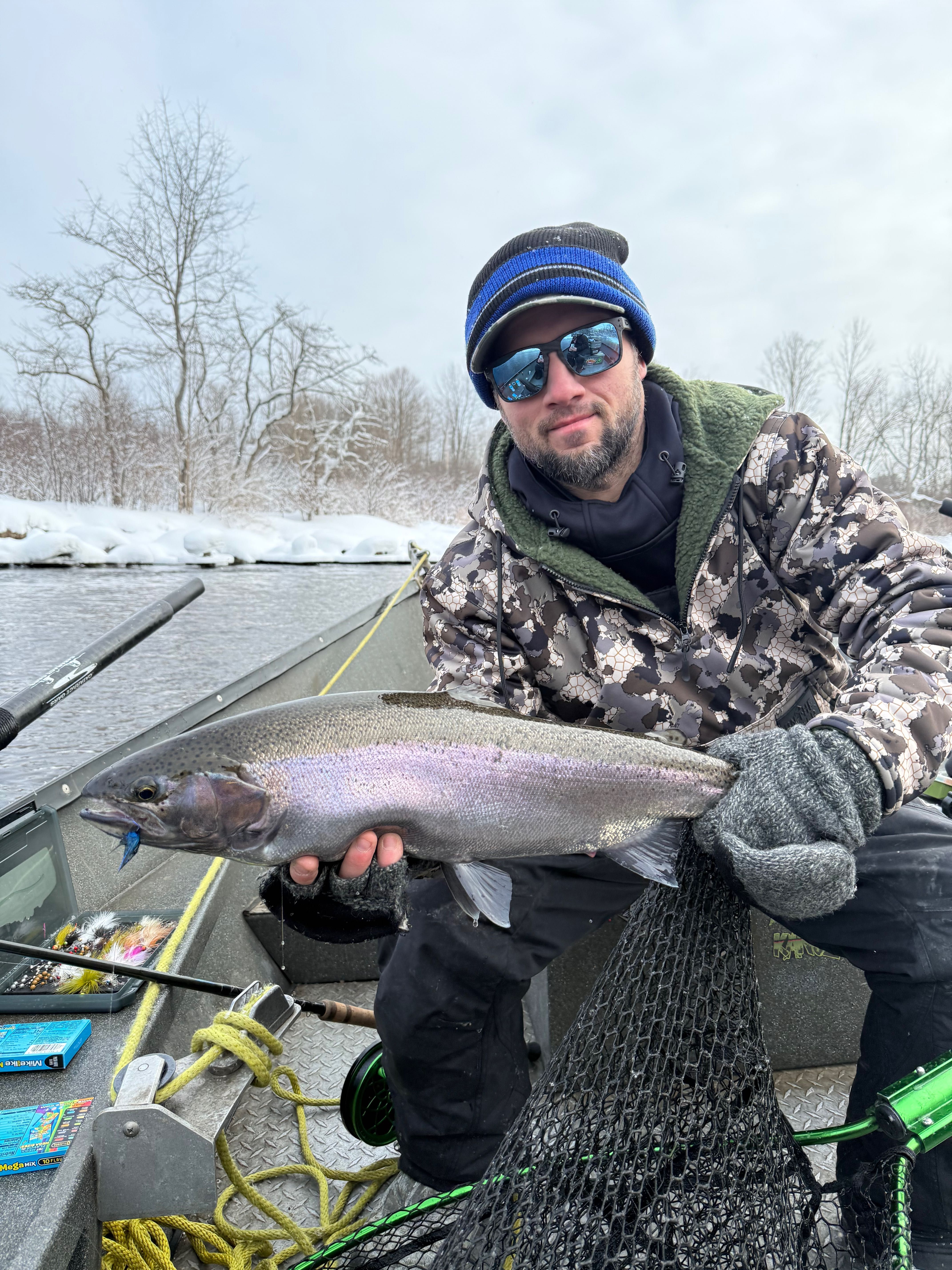 For those seeking the rhythmic beauty of river angling, we offer unrivaled Guided Salmon River drift boat fishing trips. Navigating the famous currents of the Salmon River, we provide a front-row seat to some of the best Steelhead and Brown Trout fishing in the country. Our brand-new 2025 custom 21.5-foot drift boat is designed specifically for these waters, offering a stable and stealthy platform that allows up to three guests to fish effectively in the river's most secluded honey holes.