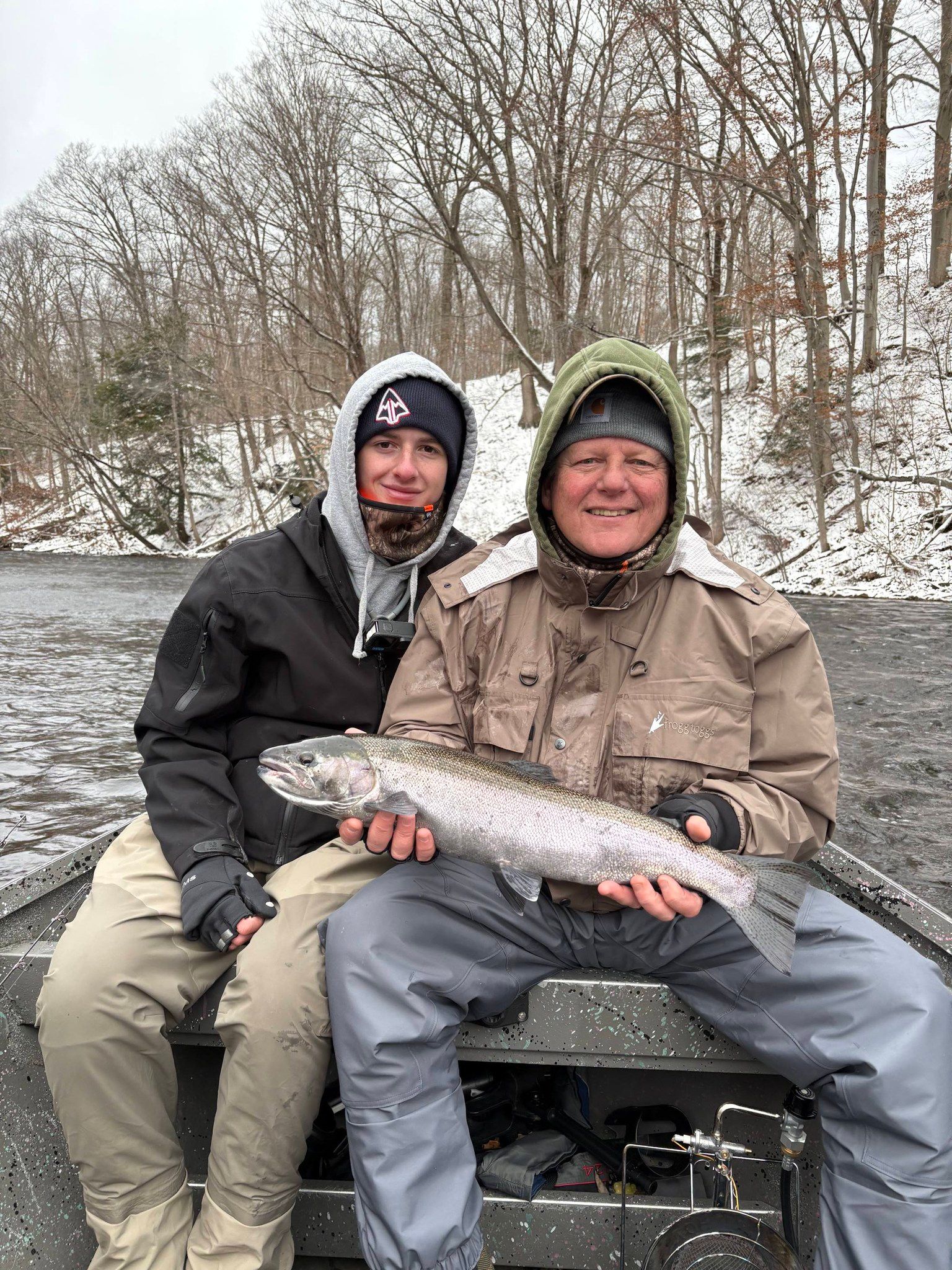PA. Boys had some fun in the snow wind and sleet today!! They both were able to land thier first steelhead after trying on thier own with no luck!!! Watching people fight and land that first one is why we do this!! I think they are hooked!!!!