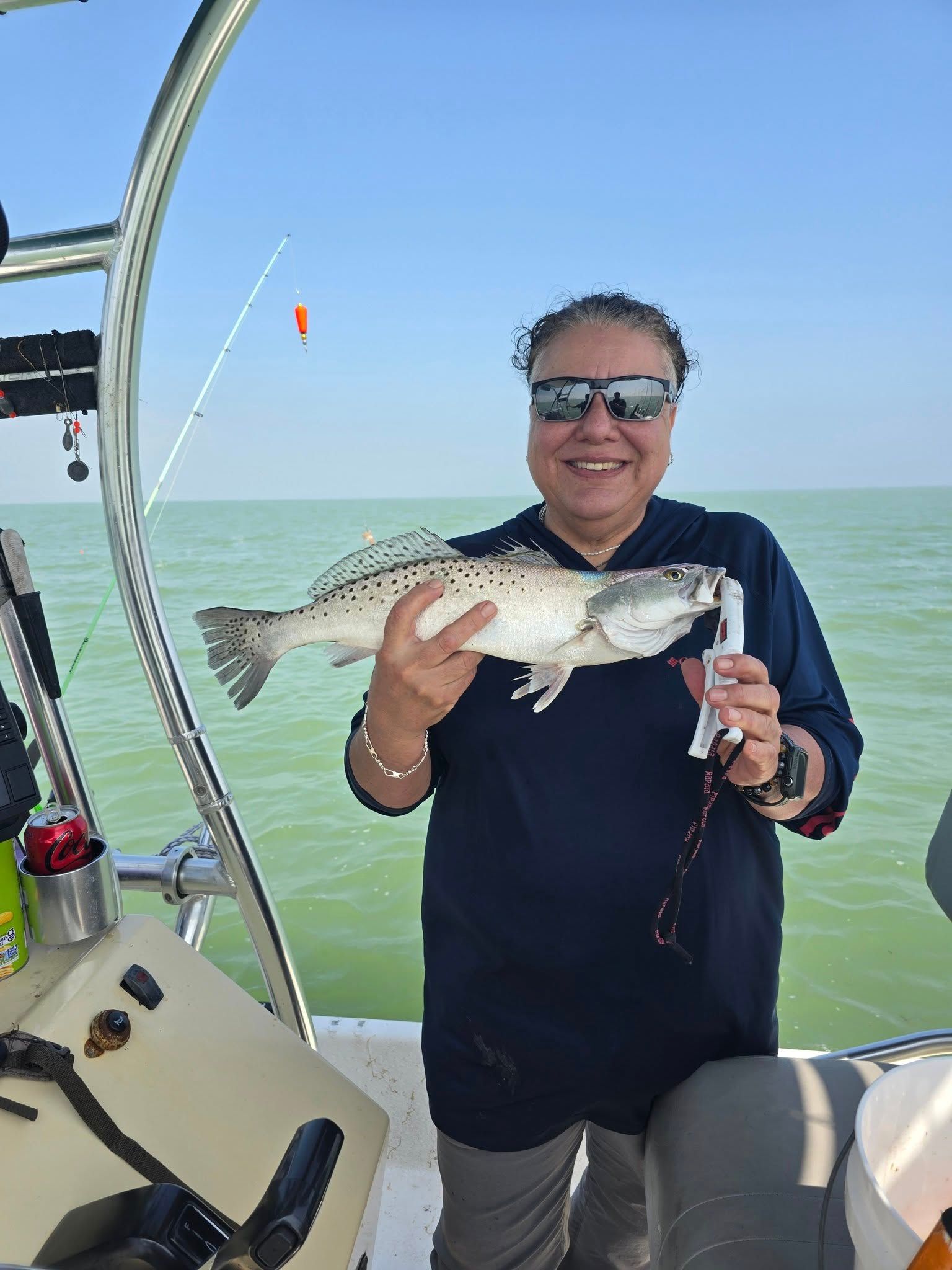 Out in the calm waters of Laguna Madre. It was a great day for catching Trout and Black Drum. Guests enjoyed reeling them in and do consider getting another trip booked soon. Taught them the best tips on how to get them biting. The warm weather helped and the location we went to were spot on.