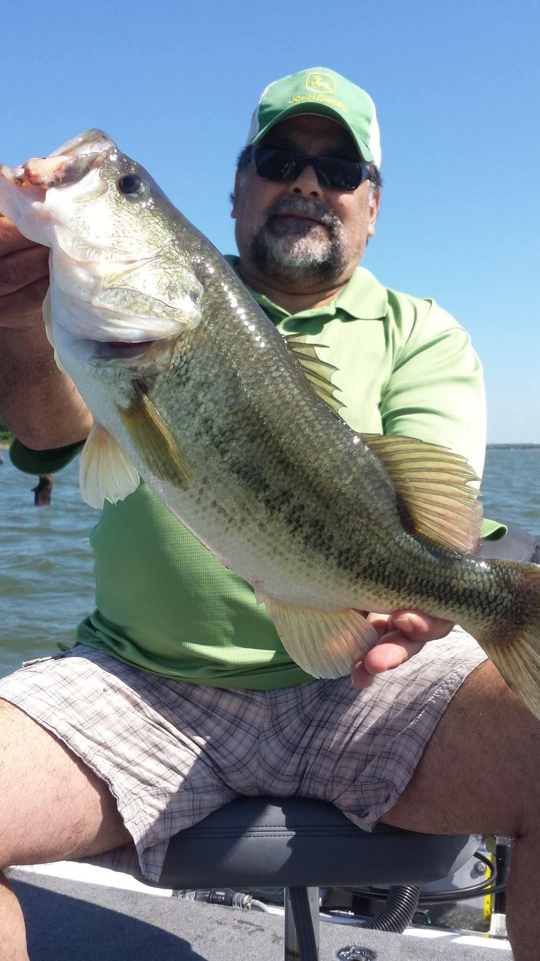 Welcome to lake Fork. Lake is at full level and surface temps are 75 to 77 degrees. The bass are biting good and about to get better for larger fish. The spawn is over and a lot of bass are starting to move offshore. About 14 to' 16' has been the best depth on main lake points. We're still catching some shallow on secondary and main lake points early and top water bite is good under cloudy skies. There's also a shallow frog bite in vegetation in some areas. On the offshore bite the drop shot and c-rig is best. V&M Strait Wild worm and Pork Shad are my go to baits. As it gets warmer the deeper bite will just get better. I would love to earn your business and maybe get your personal best bass.