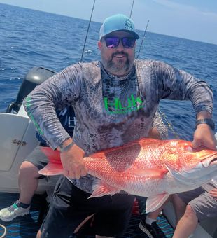 A perfect day in Port O'Connor, Texas, with a spectacular red snapper catch! The vibrant colors of this prized fish reflect the excitement of a successful fishing adventure. Surrounded by the serene waters of the Gulf, we reel in this beauty thanks to the expert guidance and the rich fishing grounds that Port O'Connor is famous for. From the thrill of the fight to the satisfaction of a full cooler, it's moments like these that make fishing here unforgettable.