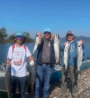 Hot bite and happy crew! Summer fishing on the Columbia River near Astoria, OR was in full swing as I took Emma and their crew out for a half-day Chinook salmon adventure with Brock Johnson's Guide Service. The early morning air was crisp, and partly cloudy skies provided perfect conditions for our shared 6-hour morning salmon hunt. We set out at the crack of dawn, ready to tackle some of the best salmon fishing the Pacific Northwest has to offer. With our gear rigged and ready, we employed a mix of fly fishing, drift fishing, and bank fishing techniques to target the prized Chinook salmon. The Columbia's waters were teeming with life, and it wasn't long before we started getting hits. Emma's crew showed some real skill, landing a nice 12-inch Chinook salmon that put up quite a fight. We also managed to hook into a beautiful 13-inch rainbow trout, adding some variety to our catch. The action wasn't limited to just salmon and trout, though. We even pulled in a few feisty blue runners, which always make for an exciting surprise when targeting other species. Our morning on the water flew by, with plenty of action to keep us engaged. The partly cloudy weather held steady throughout the day, providing comfortable conditions for fishing. We wrapped up the trip with smiles all around, having experienced some of the best salmon fishing Astoria has to offer. If you're thinking about coming out for some world-class salmon fishing on the Columbia River, now's the time to book with Brock Johnson's Guide Service. Our Half-Day Chinook Salmon Fishing trips are perfect for anglers of all skill levels looking to experience the thrill of hooking into these powerful fish. We provide all the gear and expertise you need for a successful outing, whether you prefer fly fishing, drift fishing, or fishing from the bank. The summer months offer prime conditions for targeting Chinook salmon, and you might even land some bonus species like rainbow trout or blue runners. Don't miss out on the chance to create lasting memories and potentially catch the fish of a lifetime. The Columbia River near Astoria is a salmon angler's paradise, and we're here to help you make the most of your time on the water. Book your trip with us today and get ready for an unforgettable salmon fishing adventure in the heart of the Pacific Northwest. Whether you're a seasoned angler or new to salmon fishing, our experienced guides will ensure you have the best possible chance at success on the mighty Columbia.