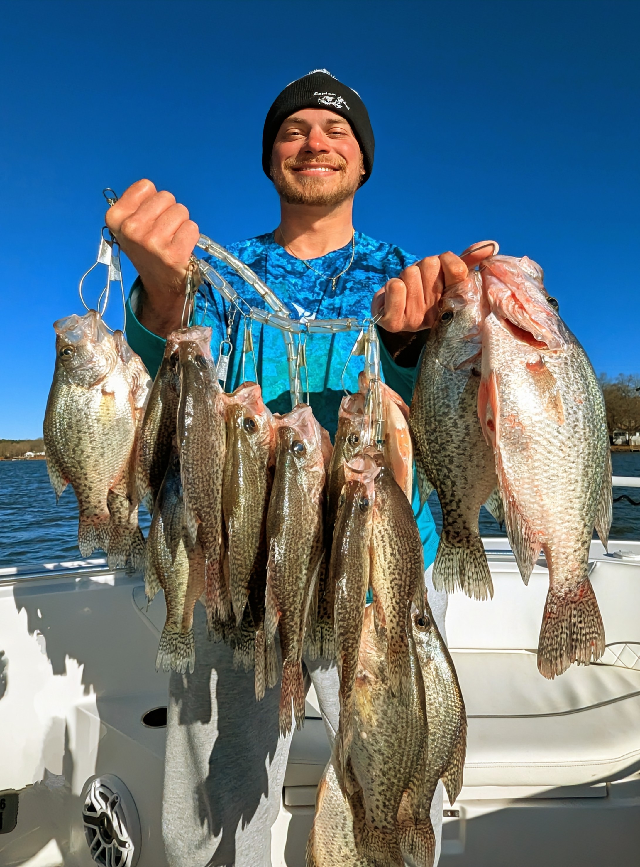 On each trip, you’ll target Striped Bass, Blue Catfish, and Crappie depending on the season and what is biting best that day. South Carolina regulations mean there’s no minimum size limit for Stripers on these waters, which gives you more opportunity to experience steady action and the excitement of setting the hook. Whether you’re looking for a cooler full of fish or the chance to battle a trophy, you’ll be in the right place. These lakes offer strong year-round fishing thanks to deep channels, healthy forage, and reliable seasonal patterns.