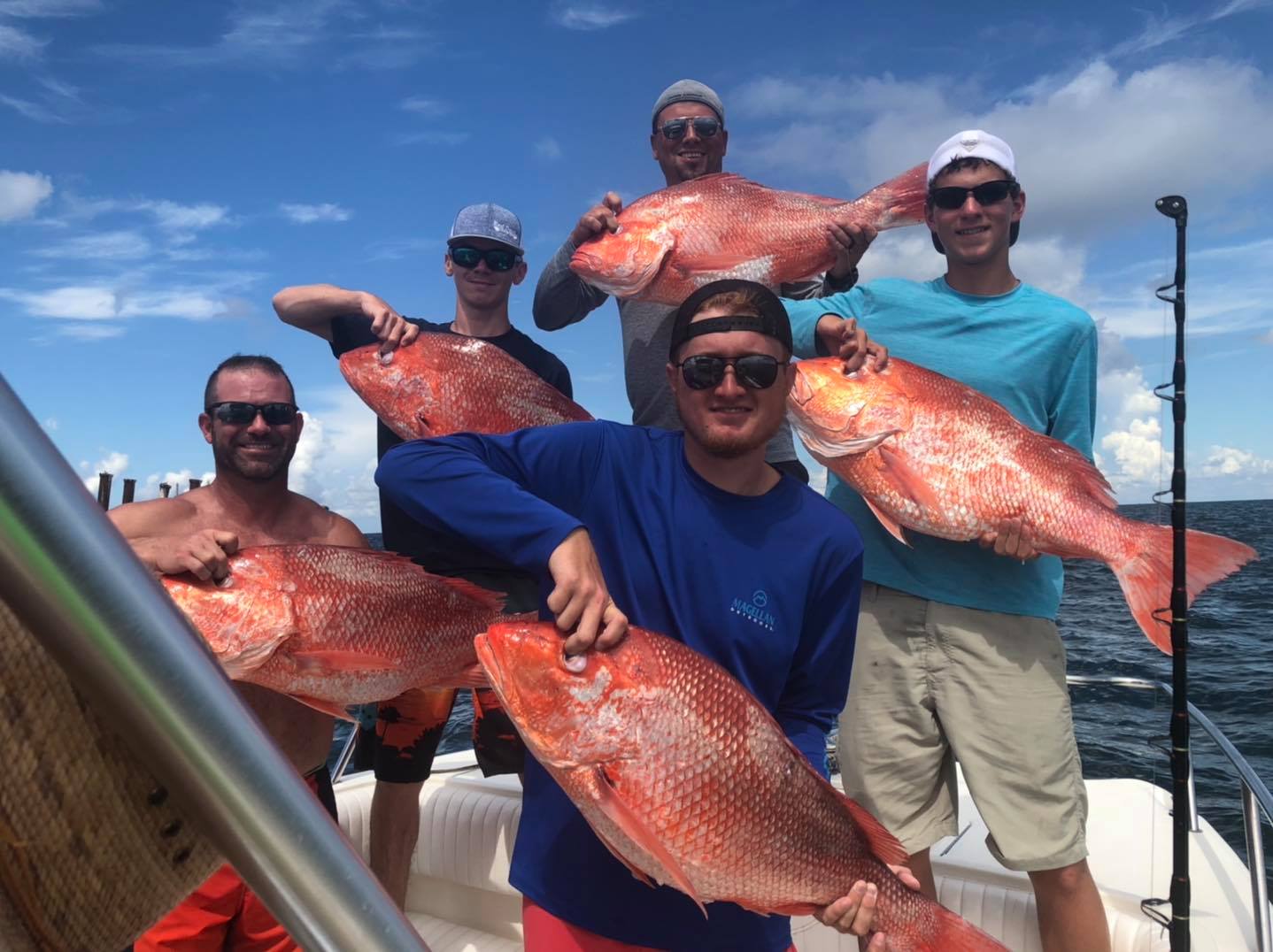 Whether you’re after Red Snapper, Vermilion Snapper, Mangrove Snapper, or a variety of Grouper like Scamp, Gag, Snowy, or Red Grouper, Captain T’s Fishing delivers exciting opportunities for anglers of all levels. Big game enthusiasts can also target Bigeye Tuna, Blackfin Tuna, Yellowfin Tuna, Wahoo, and Mahi Mahi when conditions are ideal. Our charters offer a wide range of techniques, including spinning, trolling, popping, jigging, and
