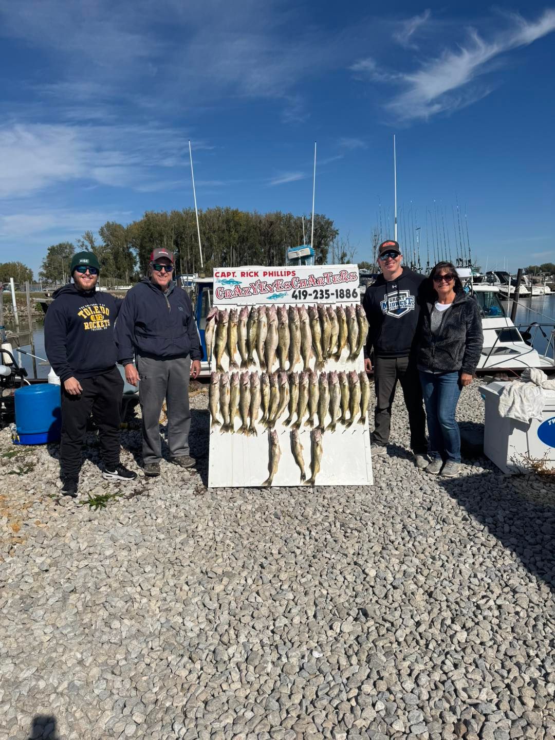 We had such a fantastic time fishing on Lake Erie with Captain Rick and his First Mate, Nicole on 7/11/25 and Crazy Eyes Charters. The boat was clean, stocked and prepared for everything we could possibly need for the day. This was my first fishing charter, but I’m told we were even lucky enough to have bathroom accommodations, if necessary, which is rare to find on a charter boat. That alone counts for big points towards what I call customer satisfaction👍🏻 The crew made an excellent team, had a great relationship with saucy banter between them and our captain didn’t waste all his orneriness on his first mate, he had plenty to share with his charter guests which really made for a fun, playful day catching fish. Rick put us on the Walleye and we caught our limit of nice big fish in about 3.5-4 hours. Will definitely book with them again and highly recommend you check them out if you are looking for a great charter experience on Lake Erie. Thanks Nicole and Rick!🎣