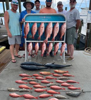 Join Dauphin's Charter Fishing for an incredible 6-hour reef fishing trip! On this extended tour, you’ll target a wide variety of exciting Gulf species, including Red Snapper, Grouper, Mahi, King Mackerel, and more. This is the perfect opportunity to make the most of your time on the water, with plenty of fishing action and beautiful scenery throughout the day. Whether you're an experienced angler or new to fishing, our expert crew will make sure you have everything you need for a great time. Book your 6-hour extended trip today and experience the best fishing the Gulf has to offer!