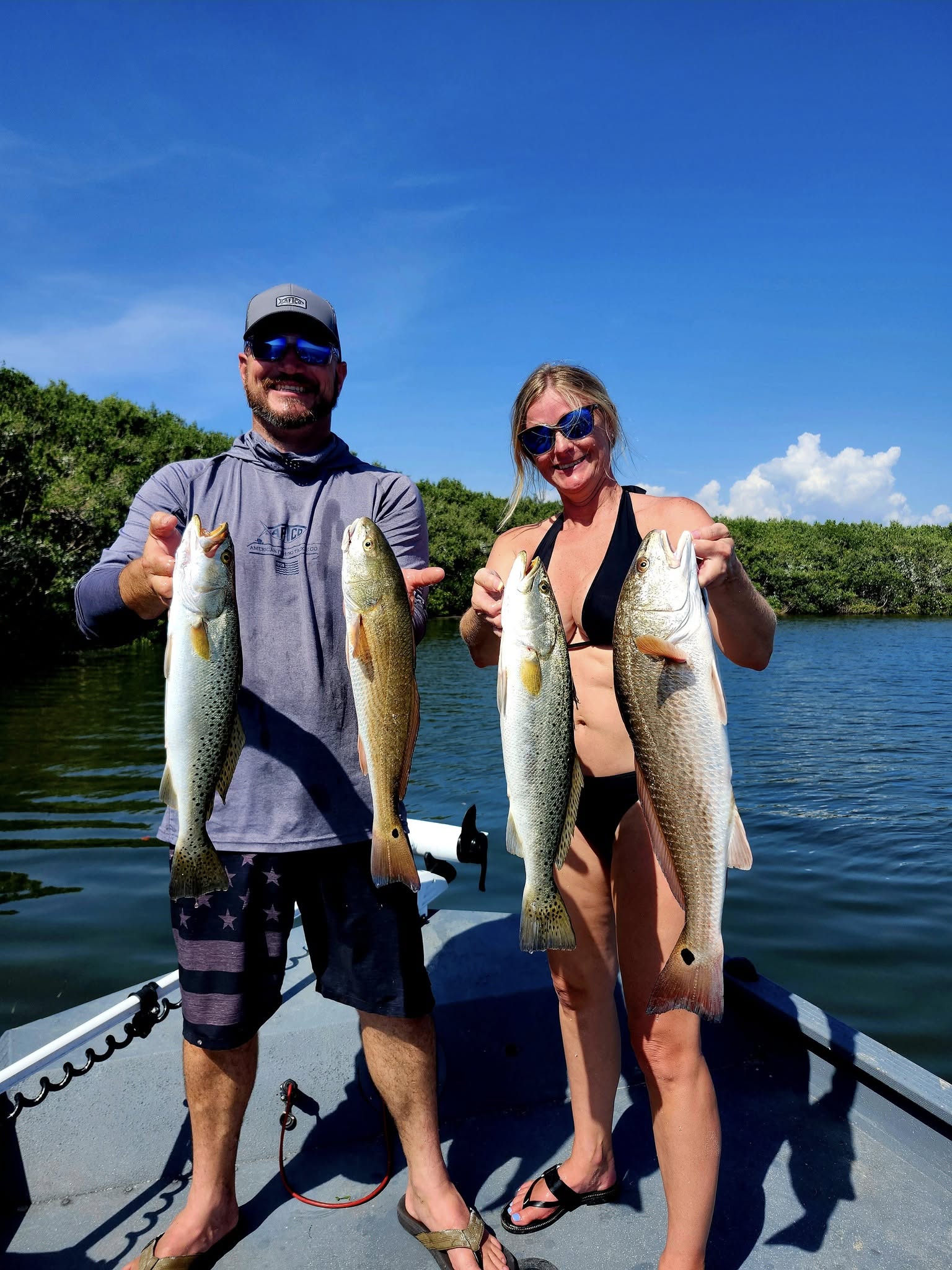 Trips take place aboard a 20-foot G3 aluminum skiff built for shallow-water access and smooth travel across the flats. The boat fits three guests comfortably and includes quality rods, reels, tackle, lures, and live bait. After your trip, Tyler will clean and package your catch so you can take home the fresh flavor of Florida’s Gulf Coast. No license is needed. Guests only need to bring sun protection, drinks, snacks, and a small cooler if they plan to keep fish.