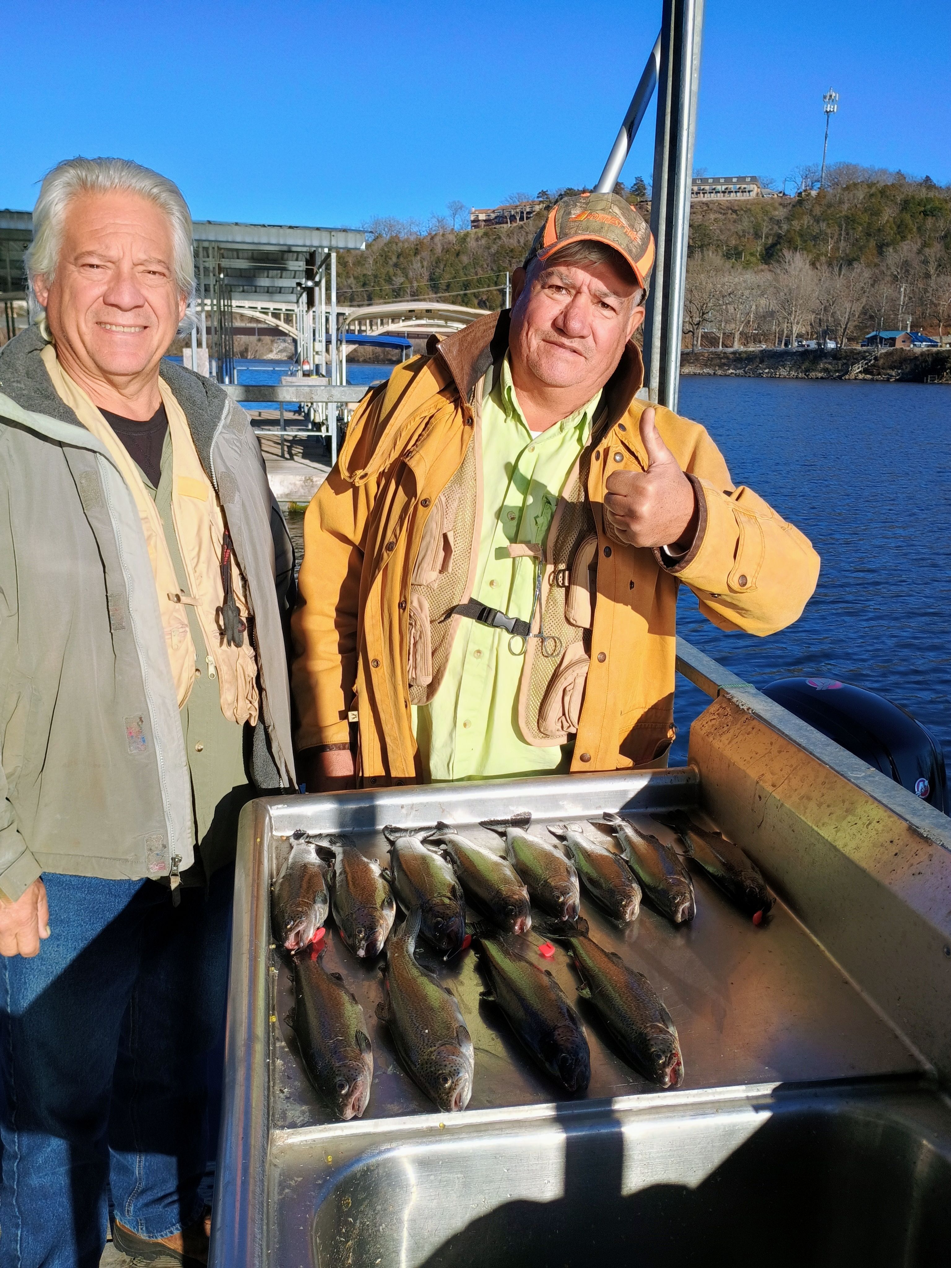 We started at 11:00 am today on another 60 degree day in Jan. and with generation running we ran up to Fall Creek and drifted in the current boating 50 Rainbow Trout my new clients from Grove OK. are planning on some fresh smoked Trout. God really blessed us with a beautiful day today.
