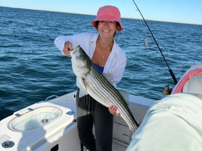 Mark and their crew joined us for an early morning summer fishing trip out of Yarmouth MA. Clear conditions throughout the day made for perfect fishing weather on the Lower Cape waters. We launched at dawn ready to put some lines in the water with Fishon Fishing Charters. We focused our efforts on bait fishing, spinning, and trolling techniques to target the striped bass that frequent these Lower Cape waters. The combination of methods worked well as we connected with several striped bass throughout the trip. These waters are known for holding good numbers of stripers, and the variety of techniques we used allowed us to cover different depths and structures effectively. We wrapped up the half day trip with solid action and everyone had a great time on the water. The Lower Cape continues to produce consistent striped bass fishing, and our half day trips offer the perfect opportunity to experience what these waters have to offer. Whether you're new to fishing or a seasoned angler, we'll put you on fish using proven techniques like bait fishing, spinning, and trolling that work best in these productive waters. Our Fishon Fishing Charters half day trips give you plenty of time to learn different methods and target striped bass in some of the most reliable fishing grounds around Yarmouth MA. The Lower Cape's diverse structure and abundant baitfish make it an ideal location for consistent striped bass action. Book your trip with us and experience firsthand why these waters are considered some of the best striped bass fishing on the Cape. We'll provide all the gear and knowledge you need for a successful day targeting these hard-fighting fish.