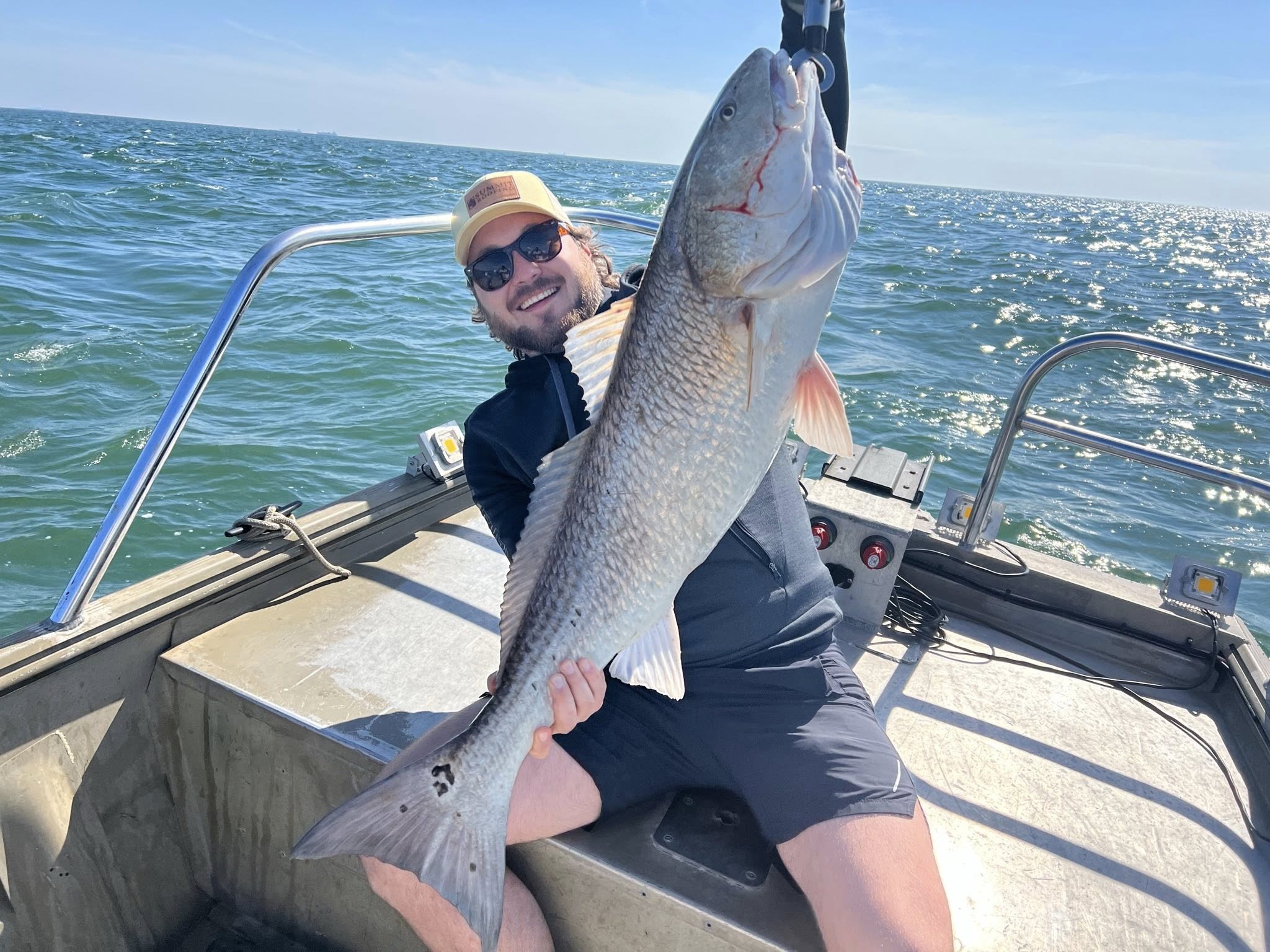 Your trip starts on a 20' custom flounder boat with a Honda air motor, Yamaha 150 VMax, and 10 Jerry ’s LED lights. Comfortably seating up to 6, it includes comfy seats, bean bags on request, pro front seats, and Bluetooth—everything you need for a productive day on the water.