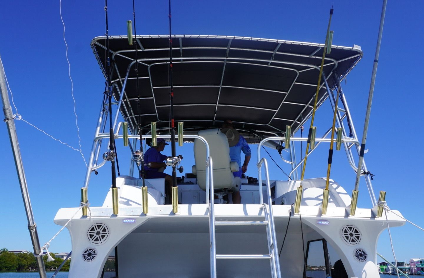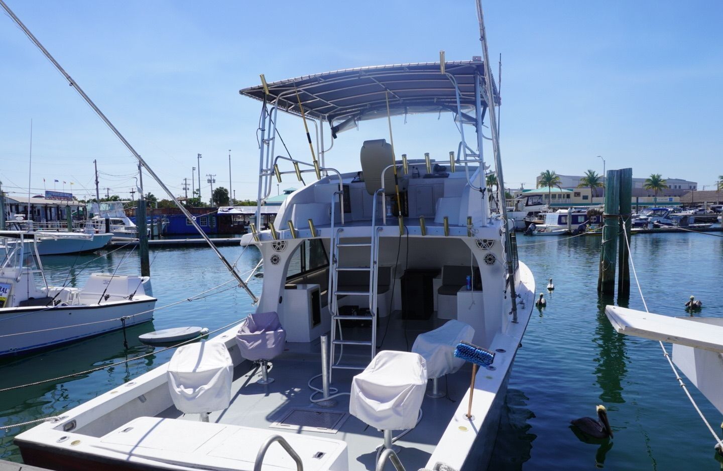 Features: Downriggers Bait Tank Outriggers Flybridge Fish Finder GPS Radar