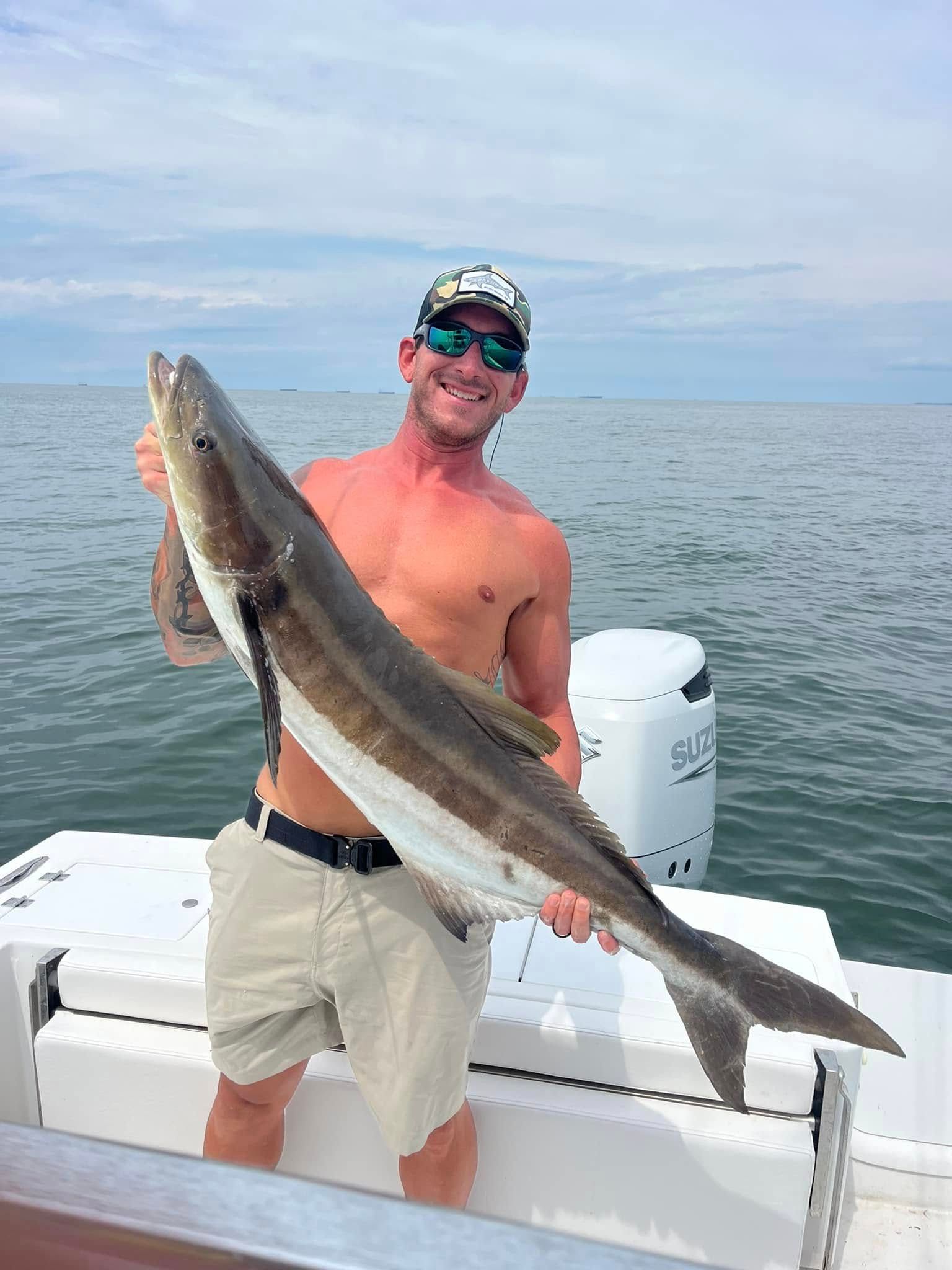 Depending on the time of year, anglers can target a wide range of popular inshore and nearshore species, including cobia, bull drum (red drum), puppy drum, speckled trout, spadefish, Spanish mackerel, flounder, tautog (taug), and sea bass. From sight-casting cobia along the oceanfront to bottom fishing for taug and sea bass or drifting the bay for drum and trout, each trip offers a unique and exciting challenge.