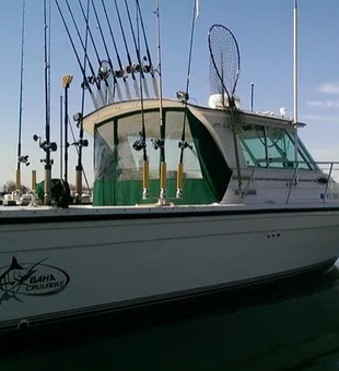Your trip takes place aboard a 28-foot Luhrs sportfishing boat (2008) powered by twin 640 HP inboard gasoline engines, with a cruising speed of up to 30 mph. The vessel is fully equipped for Great Lakes trolling and designed for comfort, safety, and efficiency. The boat has a maximum capacity of six guests, making it ideal for families, friends, and small groups looking for a personalized fishing experience.