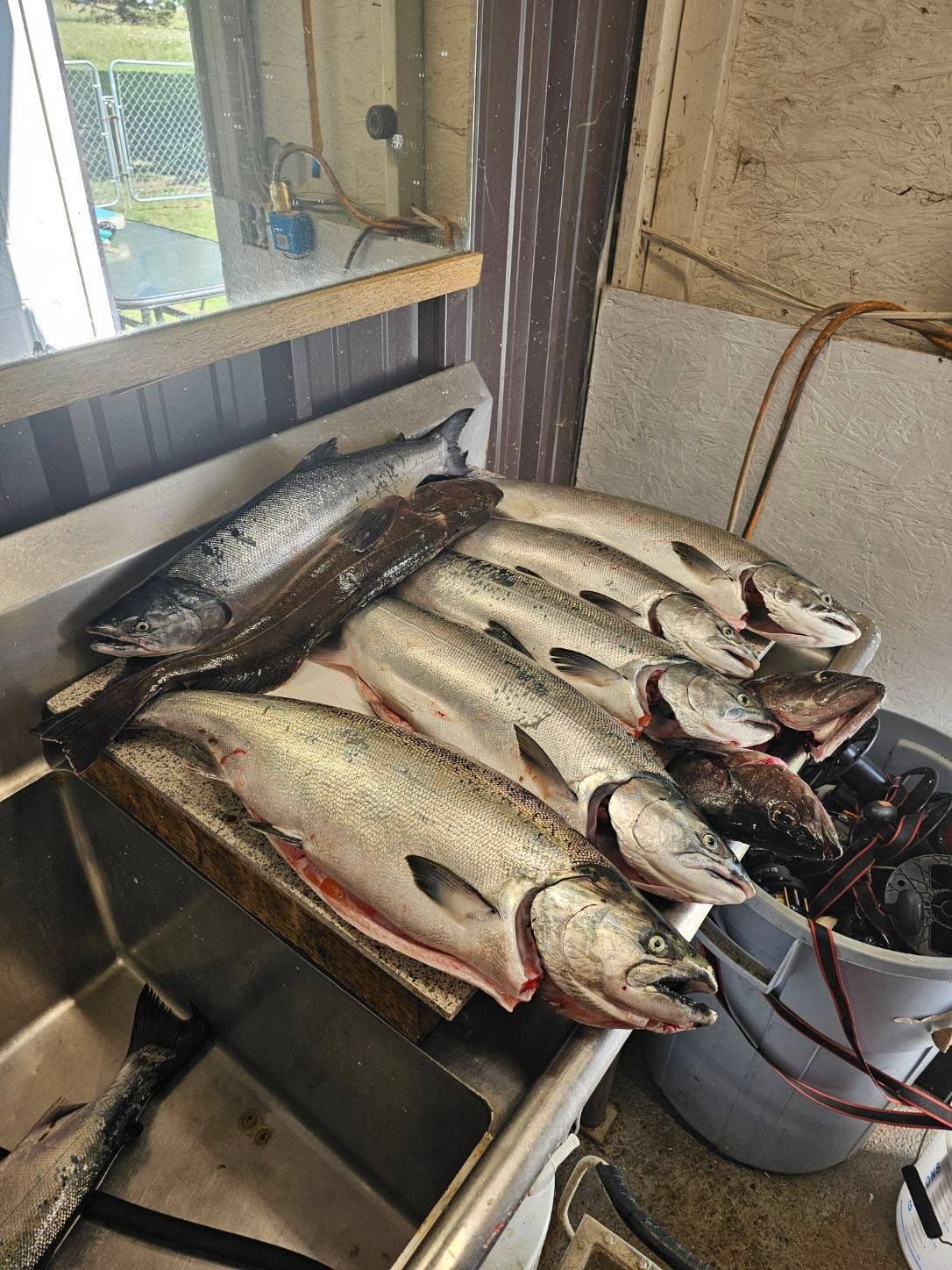 🎣 Epic Salmon Fishing in Pacific City! 🐟🔥 The salmon bite is red hot and Pacific Odyssey Dory Charters is putting fish on deck daily. Seats are available now — but only until the quota is gone! 🚤 Experience the thrill of a beach launch at Cape Kiwanda and bring home salmon like these. Don’t wait — spots are filling fast! 📞 Call/Text: 971-403-5188