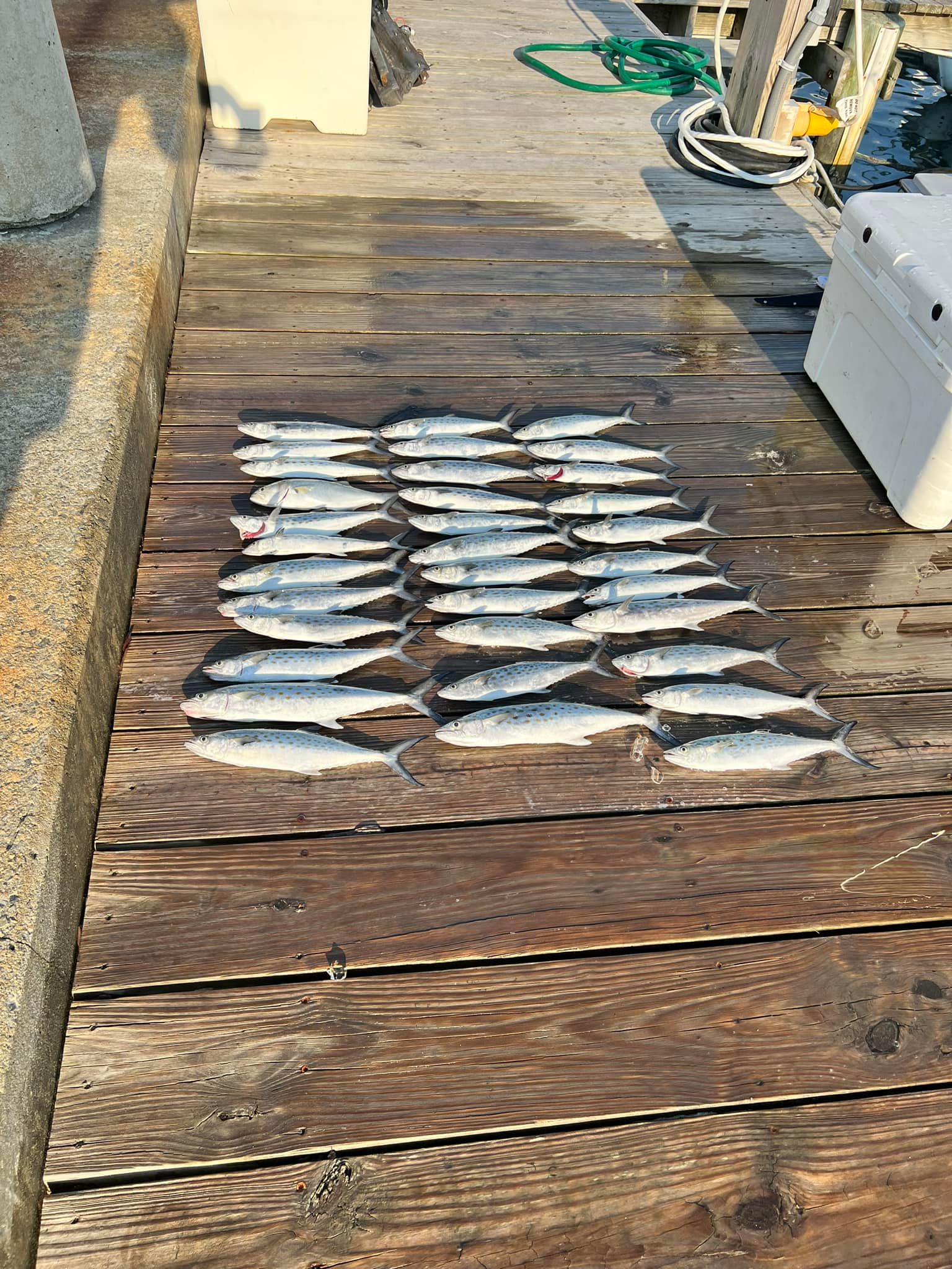 Today's trip out of Morehead City was a blast! We hit the water aiming for Spanish mackerel, and boy, did we hit the jackpot. The weather was perfect, and the mackerel were biting like crazy. Everyone on board reeled in some beauties, and we had a ton of fun doing it.