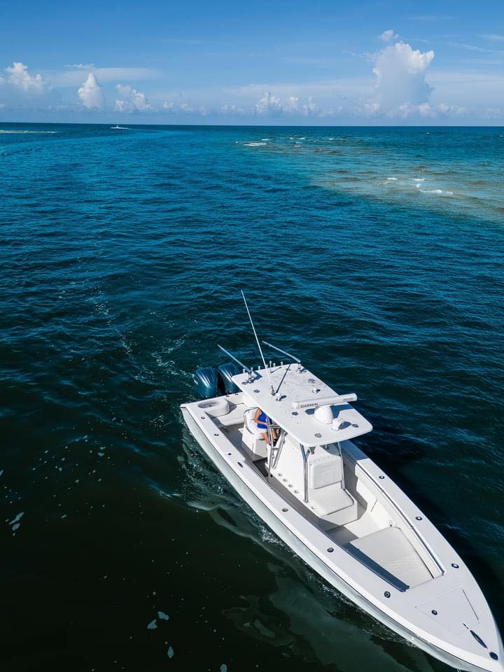 Outfitted with twin engines that cut smoothly through the Gulf waters, this vessel is fast, stable, and built to handle offshore runs with ease. The Seahunter comes fully equipped with a private bathroom, plenty of seating, generous shade, advanced electronics, and the latest navigational and fish-finding technology.