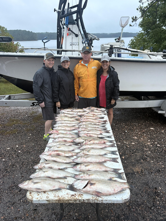 One for the books today! Michael and their crew joined us for an early morning fall striper fishing trip on Clarks Hill Lake. We launched at 7:00 am with partly cloudy skies and storms possible throughout the day. The water conditions on Lake Strom Thurmond were perfect for our Striper Fishing Trip with Reel N Time Fishing Charters! Once the stage was set, we worked multiple techniques to target the stripers. Started with trolling to cover water and locate active fish, then switched between bottom fishing and jigging when we marked schools. Clarks Hill Lake is prime territory for this kind of fishing - the structure and depth changes make it perfect for trolling patterns, and when the stripers are holding deep, bottom fishing and jigging really produce. We put together a solid box with Striped Bass, White Bass, and some nice Wiper throughout the morning and afternoon. The crew stayed busy with steady action, and we wrapped up with smiles all around and coolers full of fish! Y'all looking to get on some serious striper action? Clarks Hill Lake fishing is on fire right now, and our Striper Fishing Trip On Clarks Hill Lake 6 Hour Striper Charter Trip puts you right in the thick of it! We run these striper charters year-round from Thomson GA, and fall fishing has been absolutely incredible. Whether you want to troll the main lake or work structure with bottom rigs and jigs, we've got the techniques dialed in. Lake Strom Thurmond holds some of the best striped bass, white bass, and hybrid fishing in the region. Book your trip with Reel N Time Fishing Charters and let us put you on the fish! These stripers aren't going to catch themselves, and we know exactly where to find them. Give us a call and let's get your crew out there for some fast action striper fishing!