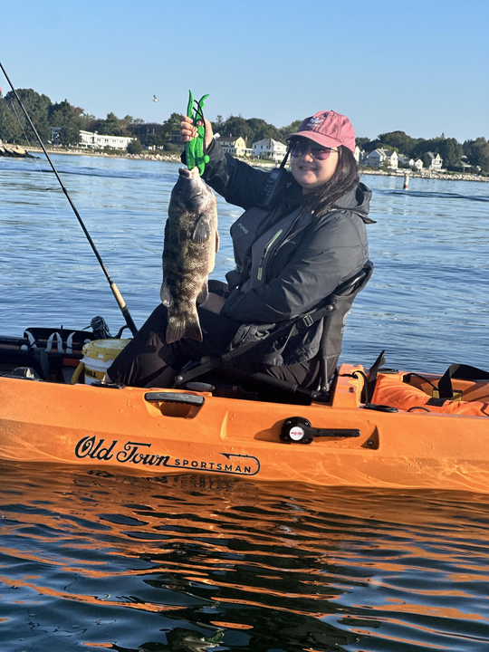 What a great day out, couldn't ask for more action! Michelle and their crew joined us for a fall morning trip starting early morning under clear conditions throughout the day. The weather stayed perfect for our inshore saltwater kayak fishing adventure around Newport, RI with Rhode Island Kayak Fishing Adventures. With our gear rigged and ready, we focused on drift fishing and bottom fishing techniques while also casting with lures to cover different water columns. The crew managed to connect with some solid tautog during our session. Newport's inshore waters are ideal for this type of fishing because the structure and current flow create perfect conditions for both bottom fishing and lure casting. We wrapped up the trip with great catches and smiles all around! If you're looking to get out on the water around Newport, RI, our Inshore Saltwater Kayak Fishing Trip offers an excellent opportunity to target various species using proven techniques. Rhode Island Kayak Fishing Adventures specializes in inshore saltwater kayak fishing experiences that put you right in the action. Whether you're interested in drift fishing, bottom fishing, or casting lures, Newport's waters provide consistent opportunities for memorable catches. The fall season brings excellent fishing conditions, and our kayak platform gets you into spots that larger boats can't reach. We provide all the gear and local knowledge you need for a successful day on the water. Our inshore trips focus on technique variety and species diversity, making each outing unique. Contact us to book your Newport kayak fishing adventure and experience why Rhode Island's coastal waters are perfect for this style of fishing.