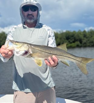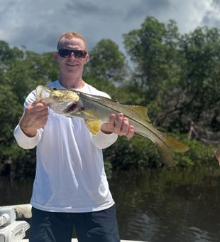 Suzanna booked a trip for her husband Shawn for his birthday. All she said is that she wanted him to get a big fish. The first two spot were a bust but the third spot was the charm🍀 Shawn with a nice 33" snook 🔥🔥 Shew the presure was off, misson accomplished 💪 Suzanna also got her a nice 27" snook🙌 Shawn friend Dexter end up getting on some other snook at the end. Before Mother Nature decided for us to go in. Happy Birthday Shawn Carter 🎉🎉  Salty Vaquero Fishing Charters 813-477-4740 Power-Pole Total Boat ControlTidewater Boats LLCBull Bay RodsCosta SunglassesImpulse Lithium BatteriesHumpback Cast Nets
