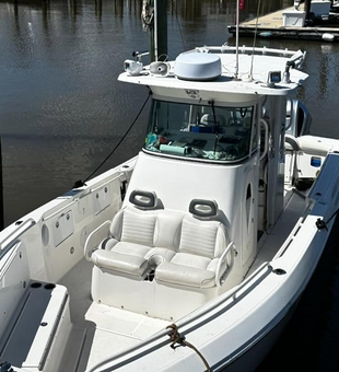 Our boat is the Everglades 290, a 29-foot boat built for safety and speed. It can accommodate up to 6 guests and is equipped with modern gear, great fishing equipment, and advanced electronics to keep you on the fish. It runs on twin 225 HP Honda engines, . Plus, it's fully equipped with Coast Guard-approved safety gear, including a bathroom for your comfort during the trip.