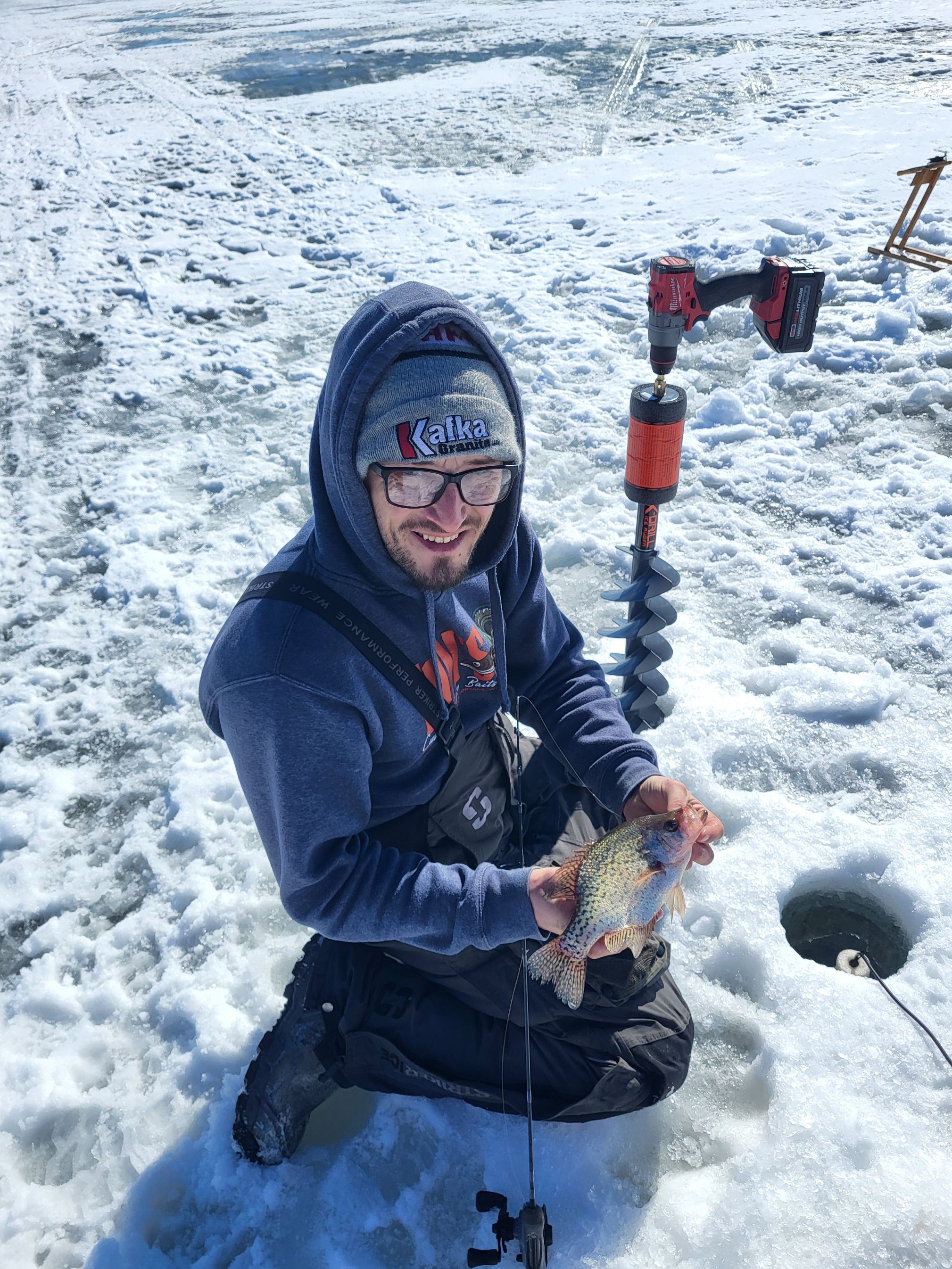 Living in Central Wisconsin has its perks, with the Wisconsin River running right through the middle of the state I have the privilege of fishing some great water. Within a few minute car ride, I have access to fish the Big Eau Pleine, Lake Du Bay, Lake Wausau, a variety of lakes to the north/south, along with many different backwater sloughs of the Wisconsin River. With so many different options to choose from it gives me the ability to stay on the bite constantly. When you book a trip with me you have the choice to target big bluegills, slab crappies, northern pike, perch, and walleyes. I fish a run-and-gun approach to put fish on the ice. This means we are constantly moving from hole to hole to allow you access to the most active fish each particular body of water has to offer. I am also equipped to set up camp for the day, make sure you are comfortable, and can stay warm while still catching fish.