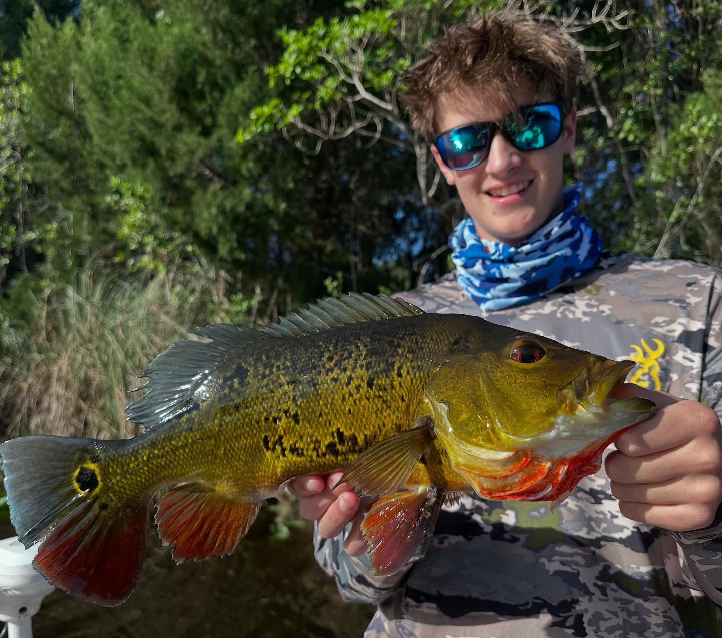 Target Florida’s most exciting freshwater species on this 4-hour Peacock Bass and exotic fish guided trip based in Lantana, FL. Fish the Lake Ida Chain and surrounding waters, known for producing high-volume days with peacock bass, largemouth bass, bluegill, clown knifefish, bowfin, and Mayan cichlids. This trip is ideal for anglers of all experience levels, including families and kids. Anglers can choose to fish with live bait, artificial lures, or fly gear. All tackle, safety equipment, and ice water are included. A Florida freshwater fishing license is required and not included in the trip price. Catch rates regularly exceed 100 fish per day, making this an action-packed option for anyone looking to explore Florida’s freshwater scene.