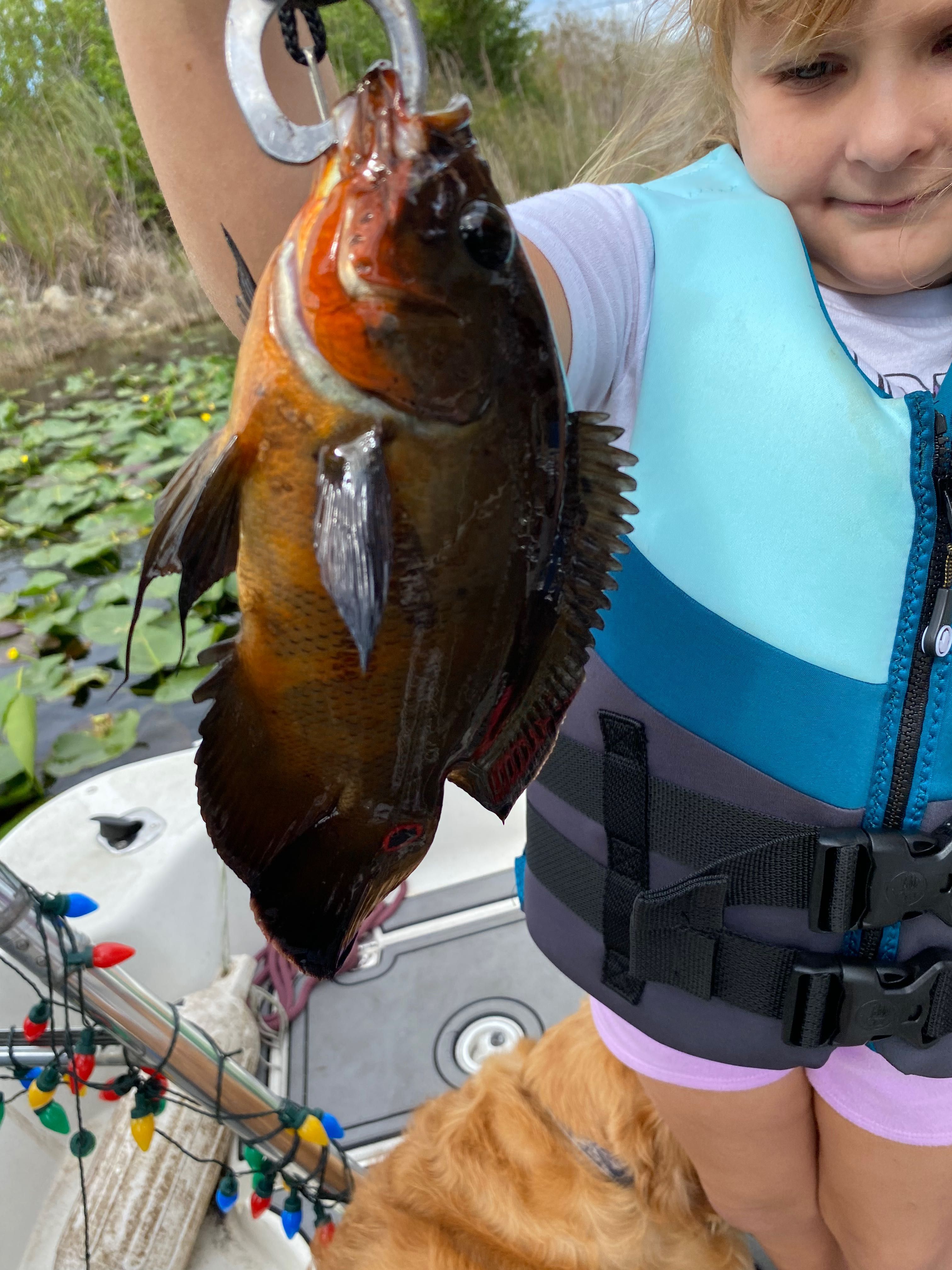 catching loads of invasive with a special gueat onboard fishing for abundance, invasive species, such as Jaguars, Mayans, Oscars and Peacock best have no size limit or a bag limit on these except for a Peacock bass loads of fun, nonstop, action