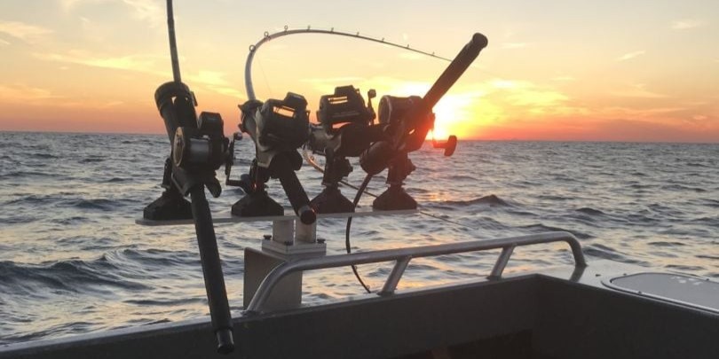 Fishing from a 23’ North River Seahawk, you’ll head out on one of the most productive freshwater fisheries in North America. This boat is fully equipped for comfort and success, featuring a bimini and enclosed cabin for weather protection, top-of-the-line rods and reels, and dual HD live scopes that let you watch the fish react beneath the surface. Whether you’re chasing a quick limit or hoping to learn new trolling techniques, you’ll have access to the same technology and methods used by seasoned tournament anglers.