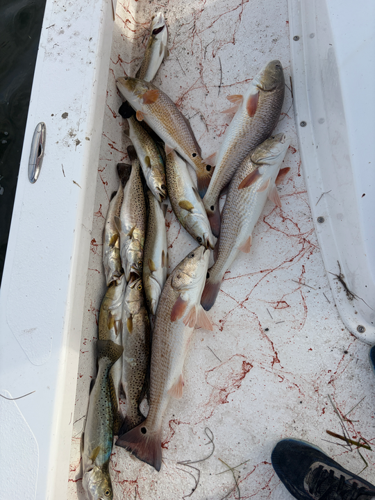 Rick and their crew joined us for an early morning summer trip that started under clear skies. The weather stayed clear throughout most of the day, though we did catch some afternoon rain later on. We headed out with Today We Fish Charter and Adventures for what turned out to be a solid day on the water. We focused our efforts on bottom fishing and still fishing techniques using bait to target the local species. Rick and their crew managed to land some nice Speckled Trout and Redfish during our time out there. The combination of still fishing and bottom fishing with bait proved effective for connecting with these fish. We wrapped up the trip with great catches and smiles all around. If you're looking to get out on the water and experience some quality fishing action, come fish with us at Today We Fish Charter and Adventures. Our 5 Hour (AM) Bay Fishing Trip gives you plenty of time to work the water and target species like the Speckled Trout and Redfish that Rick and their crew brought to the boat. We specialize in bottom fishing and bait fishing techniques that consistently produce results. Whether you're after your first fish or looking to add to your count, our morning trips offer the perfect opportunity to get on the water when the fishing is prime. Book your trip with Today We Fish Charter and Adventures and let us put you on the fish for an unforgettable day of fishing action.