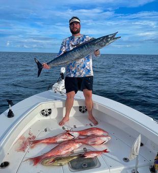 Book a high-energy nearshore fishing trip in Gulf Shores and enjoy a day packed with rod-bending action. This trip gives anglers the chance to catch a wide variety of species, including Cobia, King Mackerel, Red Snapper, Mangrove Snapper, Redfish, Spanish Mackerel, Bonito, Flounder, Sheepshead, Speckled Trout, Gray Triggerfish, and Narrow-barred Spanish Mackerel. Whether you're after size or variety, this outing delivers results in productive nearshore waters. It’s a great choice for new anglers and seasoned fishers. Our crew works to ensure each trip is fun and rewarding. Secure your spot today for a catch-filled experience in the Gulf. Deposits are non-refundable (Trips & Rates Page)