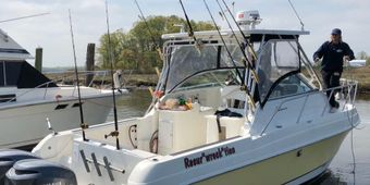 Our 31’ Grady White center console is your gateway to the deep seas, equipped with outriggers and all essential amenities for a successful fishing expedition. Whether you're targeting Striped Bass, Bluefish, Mahi Mahi, Flounder, Black Seabass, Yellowfin Tuna, or other prized species, our vessel ensures a comfortable and enjoyable journey for up to 6 passengers.